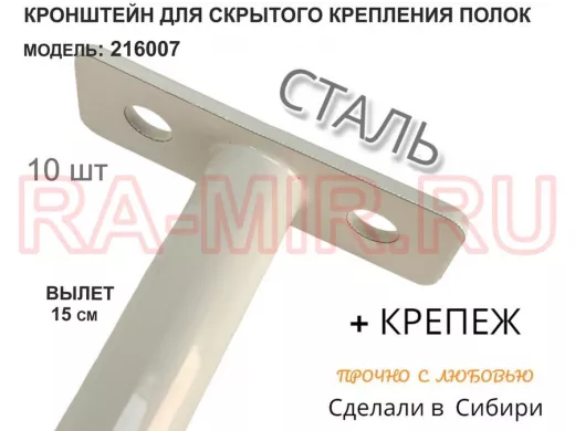 Кронштейн для скрытого крепления полок,12х150мм, серый, в наборе 10шт "SVORKAMAX-216007" без полки
