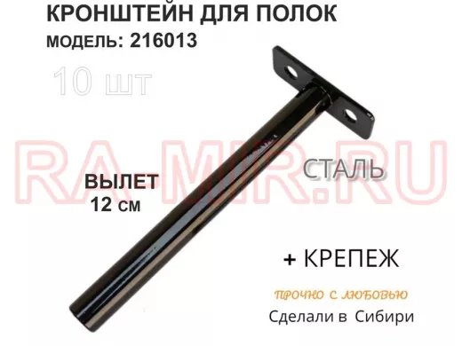 Кронштейн для скрытого крепления полок,12х120мм, черный, в наборе 10шт "SVORKAMAX-216013" без полки