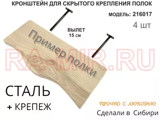 Кронштейн для скрытого крепления полок,12х150мм, черный, в наборе 4шт "SVORKAMAX-216017" без полки