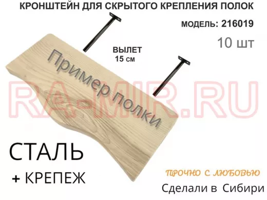 Кронштейн для скрытого крепления полок,12х150мм, черный, в наборе 10шт "SVORKAMAX-216019" без полки