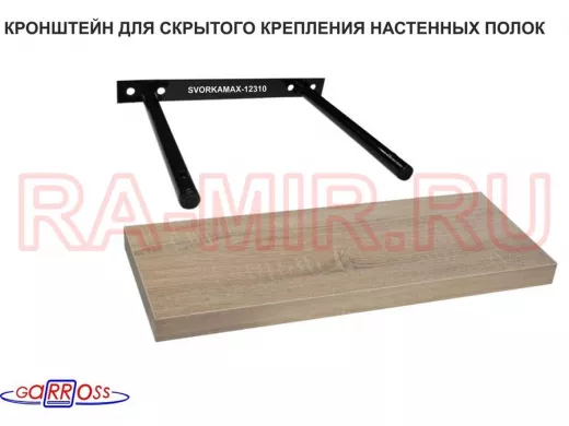 Кронштейн для скрытого крепления полок, 2х15см с отверстием, черный, в наборе 1шт "SVORKAMAX-18737"