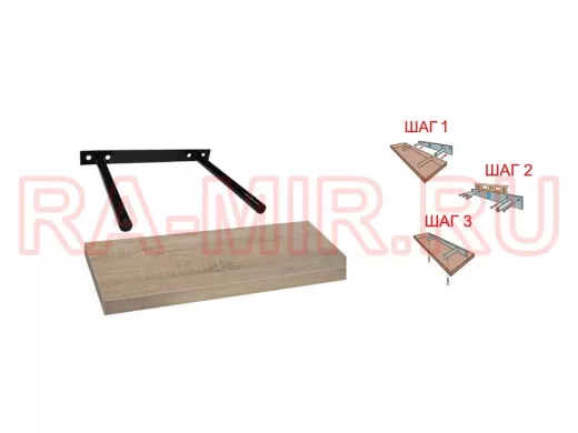- На кронштейны плотно надевается полка, в торце которой проделаны отверстия диаметром 12 мм.