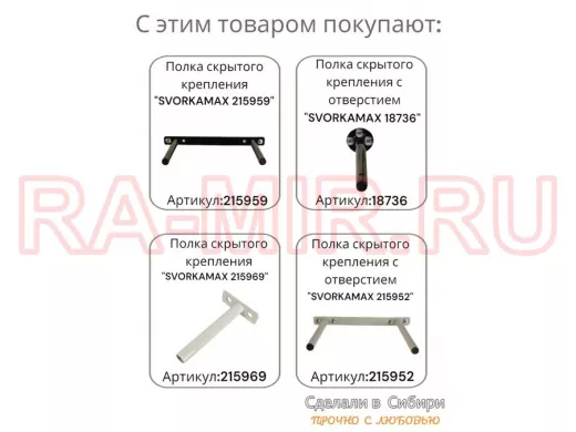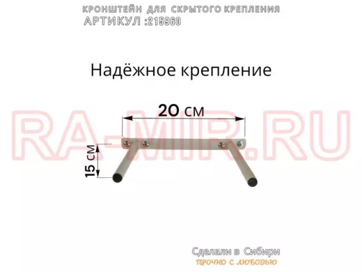 Заказать звонокКронштейн для скрытого крепления полок, 2х15см, серый, в наборе 1шт "SVORKAMAX-215960" ширина 20см
