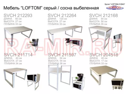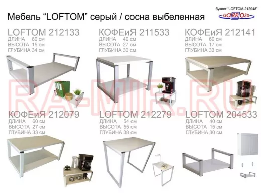 Заказать звонокСтолик приставной, серый, 55см "LOFTOM 212841" прикроватный стол журнальный с полкой, сосна