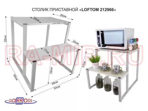 - Универсальная подставка для бытовой техники (микровоновой печи, кофемашины, тостера, электрического чайника и др) позволяет эффективно использовать место на столе.