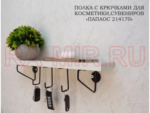 Заказать звонокКлючница, полка с крючками в прихожую 40х10 см, высота 9 см, черный "ПАПАОС 214170" сосна