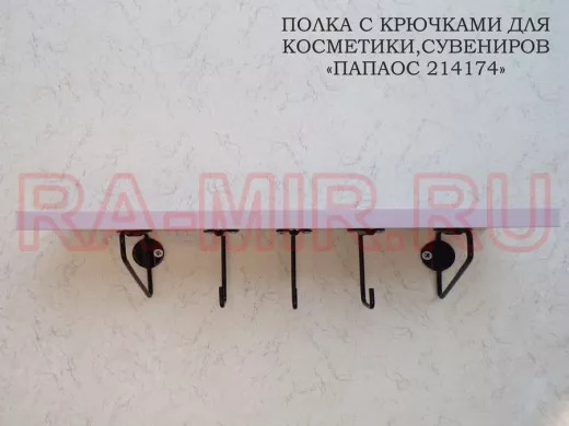 Ключница, полка с крючками в прихожую 40х10 см, высота 9 см, черный "ПАПАОС 214174" лаванда