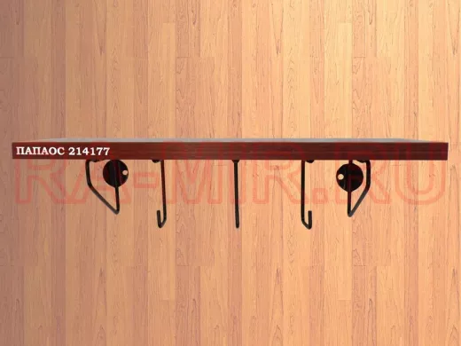 Ключница, полка с крючками в прихожую 40х10 см, высота 9 см, черный "ПАПАОС 214177" орех