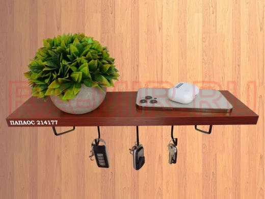 Заказать звонокКлючница, полка с крючками в прихожую 40х10 см, высота 9 см, черный "ПАПАОС 214177" орех