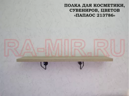 Полка для косметики, сувениров, цветов, 54х10 см, высота 9 см, черный "ПАПАОС 213786" дуб сонома