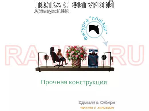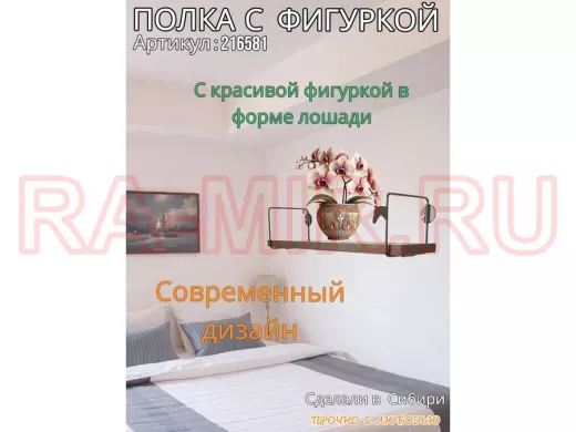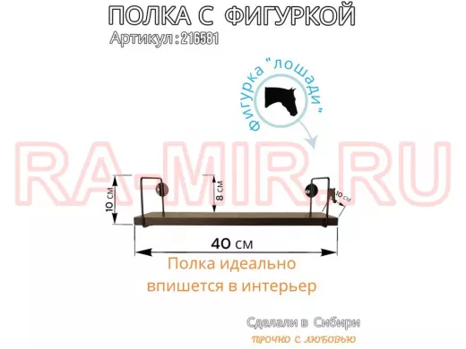 Заказать звонокПолка с фигуркой лошади "ABILOVE-216581" размер 10х40см ,черный ,венге