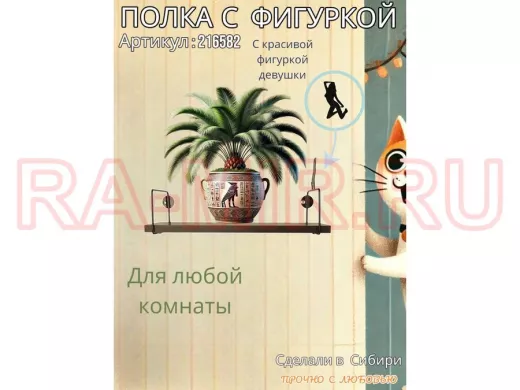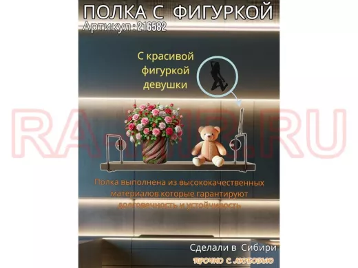 Заказать звонокПолка с фигуркой девушки "ABILOVE-216582" размер 10х40см ,черный ,венге
