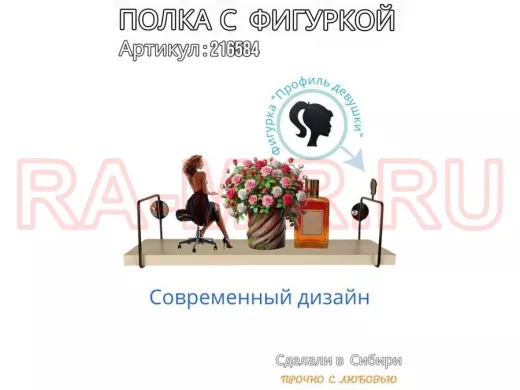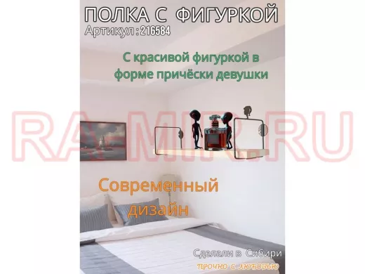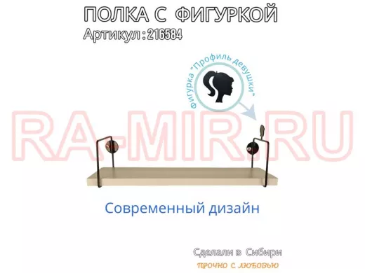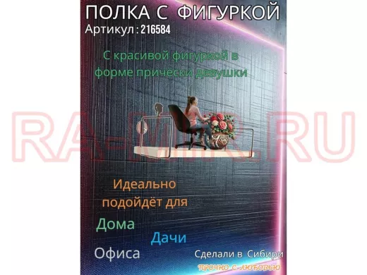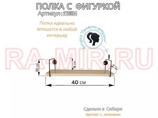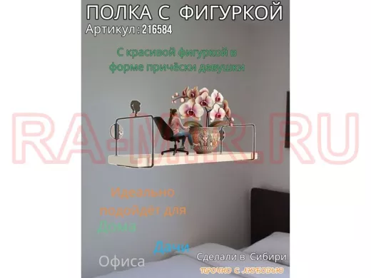 Заказать звонокПолка с фигуркой прически девушки "ABILOVE-216584" размер 10х40см ,черный ,сосна выбеленная