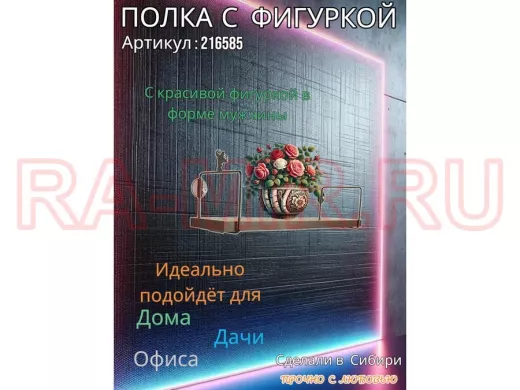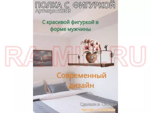 Интересная полка с фигуркой, позволит разнообразить интерьер, сделать его непохожим, уникальным, запоминающимся.