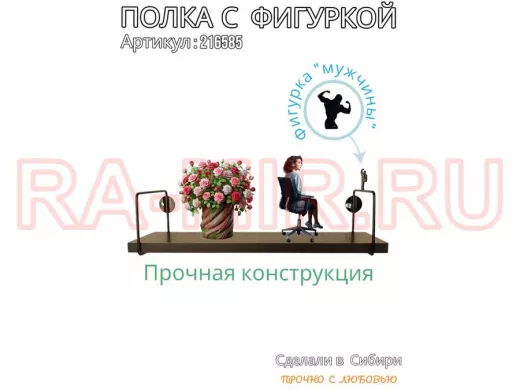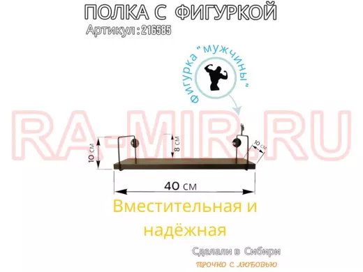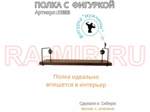 Заказать звонокПолка с фигуркой мужчины "ABILOVE-216585" размер 10х40см ,черный ,венге