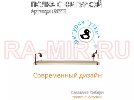 Заказать звонокПолка с фигуркой утки "ABILOVE-216588" размер 10х60см ,черный ,сосна выбеленная