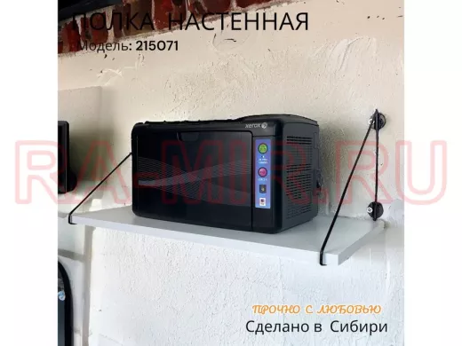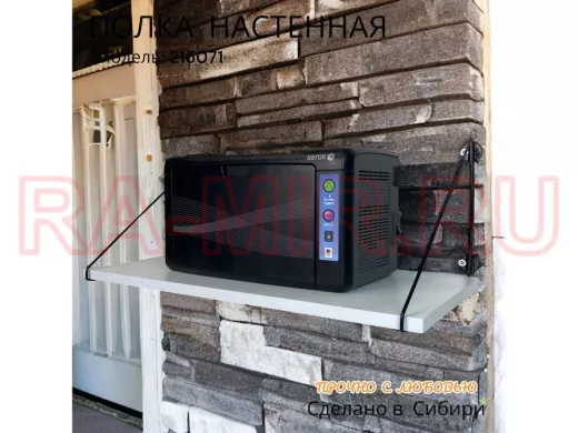 - Полка надежно крепится к стене при помощи анкеров или шурупов с дюбелями, на ней можно разместить принтер, бумагу и многое другое