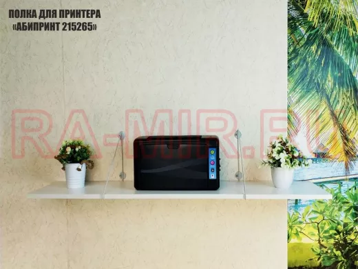 - Полка надежно крепится к стене при помощи анкеров или шурупов с дюбелями, на ней можно разместить принтер, бумагу