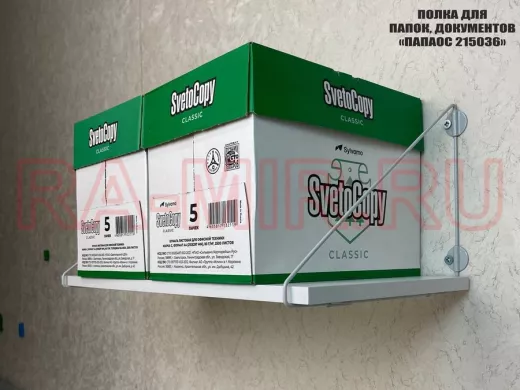- Полка надежно крепится к стене при помощи анкеров или шурупов с дюбелями, на ней можно разместить папки, документы,бумагу и многое другое