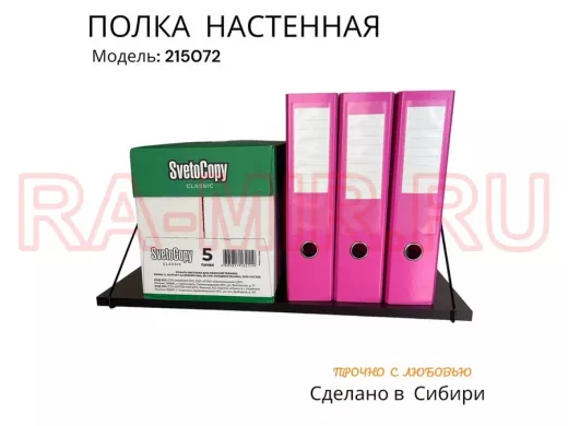- Полка надежно крепится к стене при помощи анкеров или шурупов с дюбелями, на ней можно разместить папки, документы