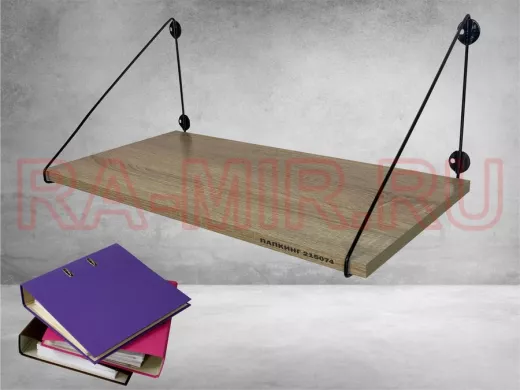 Заказать звонокПолка для папок и документов "ПАПКИНГ 215074" высота 26 см размер 60х30 см черный и дуб сонома