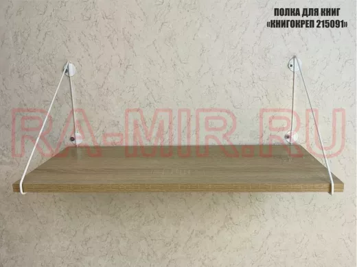 Полка для книг "КНИГОКРЕП 215091" высота 26 см размер 60х30 см белый и дуб сонома