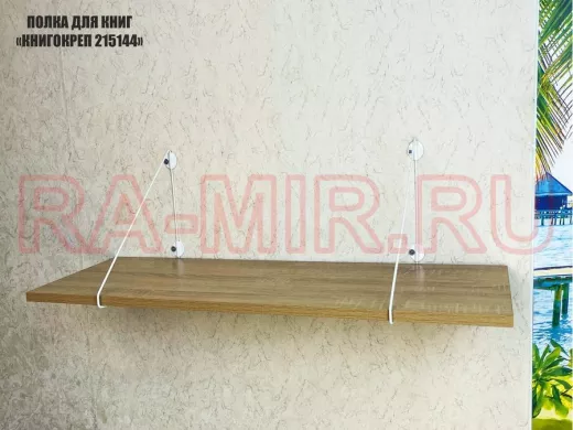 Полка для книг "КНИГОКРЕП 215144" высота 26 см размер 90х30 см белый и дуб сонома