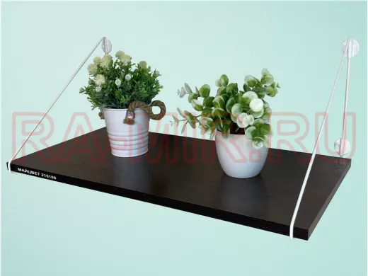 Полка выдержит тяжелые цветочные горшки с растениями, фоторамки, книги, сувениры и много другое.