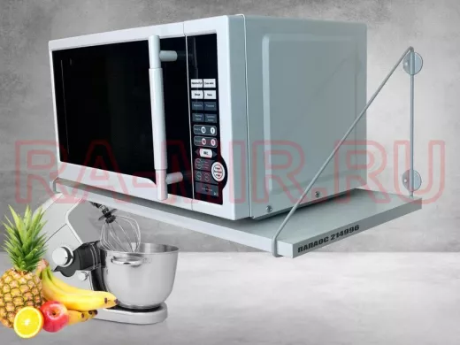 Заказать звонокПолка для микроволновки "ПАПАОС 214996" высота 26 см размер 60х30 см серый и белый шагрень