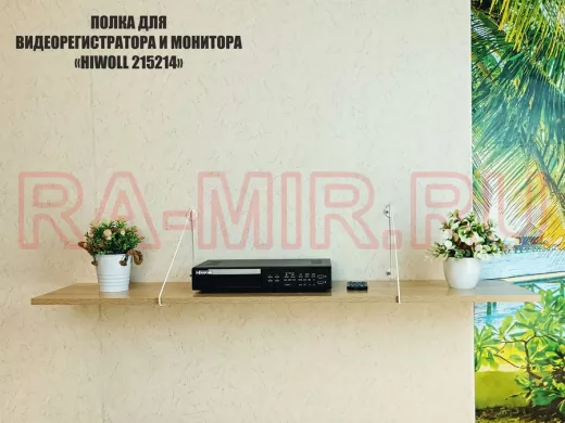 Полка для видеорегистратора и монитора "HIWOLL 215214" высота 26 см размер 120х30 см белый и дуб