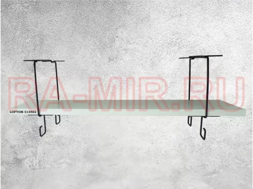Полка подвесная под шкаф или стол черная, 60х15 см, сосна "LOFTOM 213562" высота 15см, с крючками