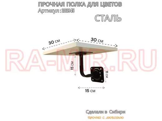 Заказать звонокПолка для цветов настенная пьедестальная, размер 30х30см "LOFTOM-202945" цвет сосна выбеленная