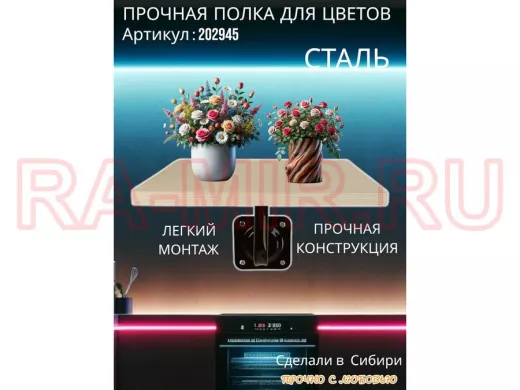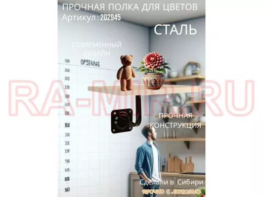 - Полка имеет надёжную конструкцию и может выдержать до 20 кг.