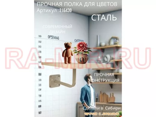 - Полка имеет надёжную конструкцию и может выдержать до 20 кг.