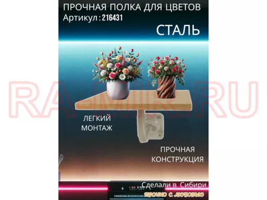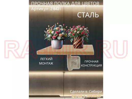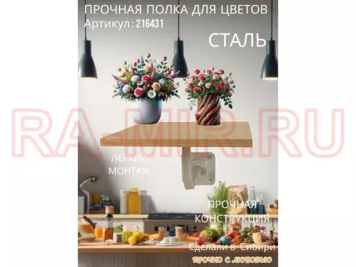 - Полка имеет надёжную конструкцию и может выдержать до 20 кг.
