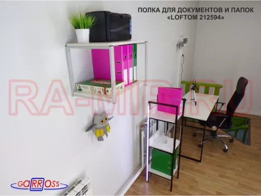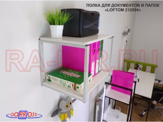 Заказать звонокПолка для папок и документов, высота 38см серый "LOFTOM 212594"две полки 35х54см, сосна выбеленная