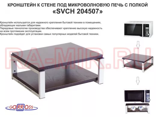 Заказать звонокКронштейн для микроволновки, 17см серый "SVCH 204507" под микроволновую печь, полка 30х40см, венге