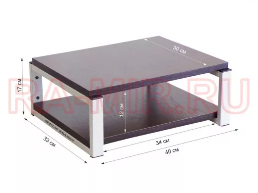 - Каркас изделия выполнен из высокопрочного металла. Полка изготовлена из ламинированного ДСП