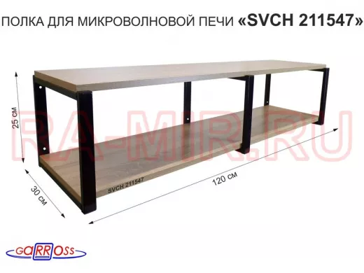 Заказать звонокКронштейн для микроволновки, 27см черный, 2 полки 30х120см "SVCH 211547" под микров.печь,дуб сонома