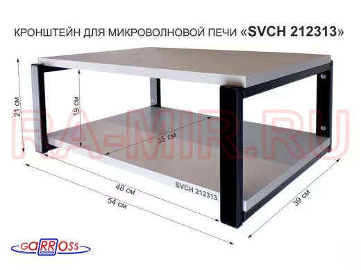 Заказать звонокКронштейн для микроволновки, 21см чёрный "SVCH 212313" две полки 35х54см, сосна выбеленная
