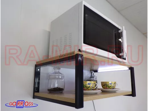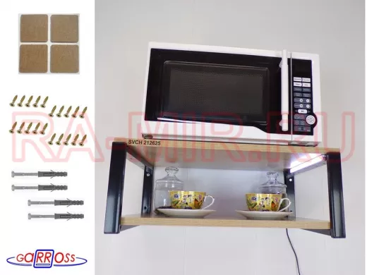 Кронштейн для микроволновки с подсветкой, 21см черный "SVCH 212625" две полки 35х54см, дуб сонома