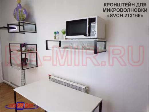 Кронштейн для микроволновки, 17см чёрный "SVCH 213166" под микроволновку,две полки 90х30, сосна