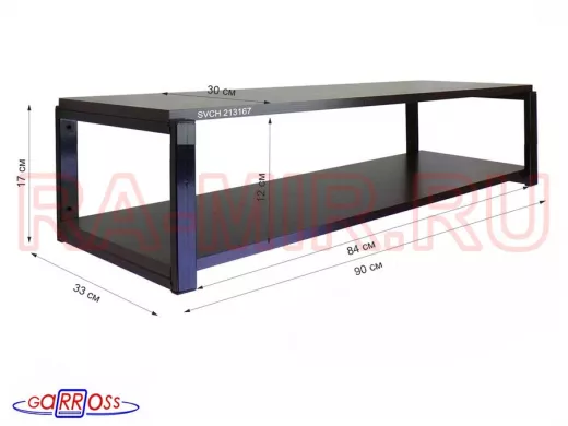 - Каркас изделия выполнен из высокопрочного металла. Полка изготовлена из ламинированного ДСП