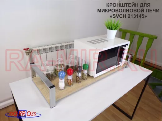 Кронштейн для микроволновой печи, 15см серебристый "SVCH 213145" полка 90х30, дуб сонома