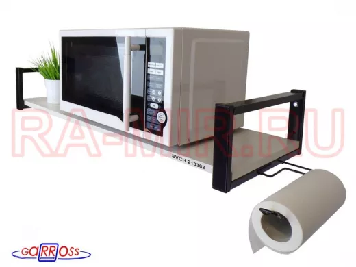 Кронштейн для микроволновой печи, 15см чёрный "SVCH 213362" полка 90х30,сосна с держателем полотенец
