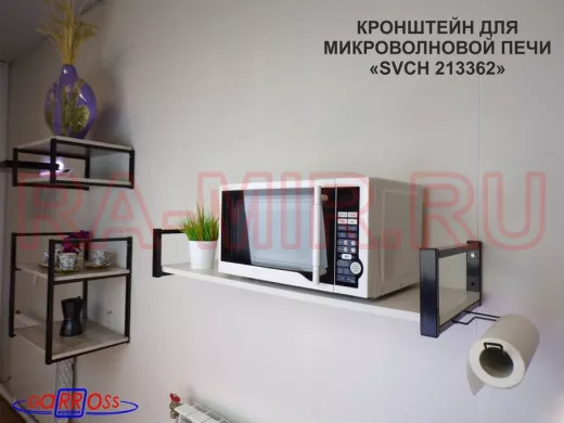Заказать звонокКронштейн для микроволновой печи, 15см чёрный "SVCH 213362" полка 90х30,сосна с держателем полотенец
