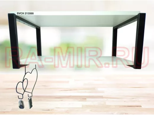 - Каркас изделия выполнен из высокопрочного металла. Полка изготовлена из ламинированного ДСП