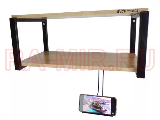 - Каркас изделия и держатель для телефона выполнен из высокопрочного металла. Полка изготовлена из ламинированного ДСП.