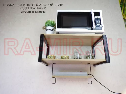 Заказать звонокПолка для микроволновки, 27см черный "ПолкаКрепка-213824" 60х30, дуб сонома, с держателем фильтра