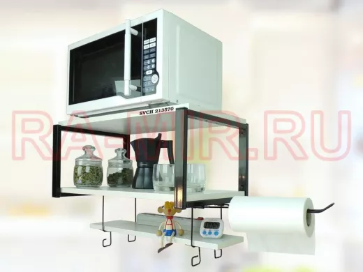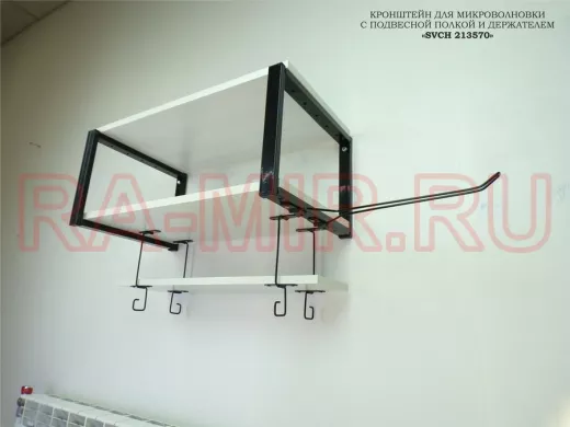 Заказать звонокПолка для микроволновки с подвесной полкой, 27см, черный "SVCH 213570" 60х30см, сосна, держатель
